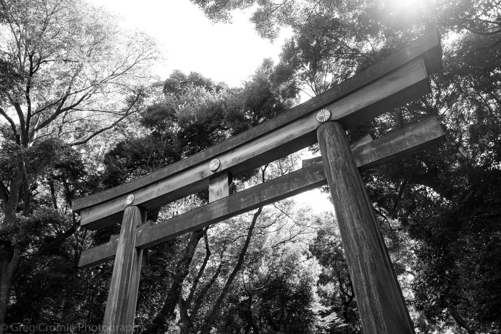 When I arrived at the edge of the shrine grounds, which covers a 70 hectare area and contains a staggering 120,000 trees donated to the shrine from all over Japan, I was presented with an immense timber gate structure or torri. This gate stands 12 metres tall and is made from a 1500 year old Taiwanese Cyprus tree. Awe inspiring to stand back from it, under it, wherever and marvel at the size and simplistic beauty of this structure. The timber supports and cross beam and huge. The small but essential decorations. It speaks volumes of the simplicity of Japanese design.