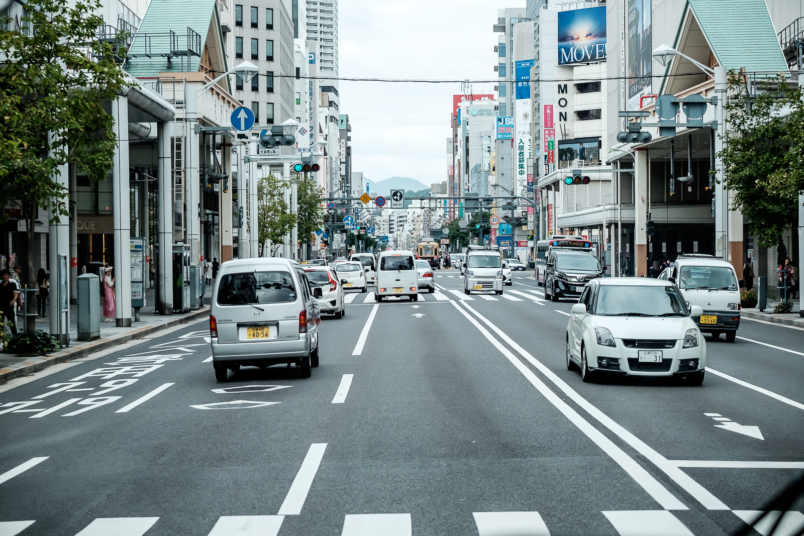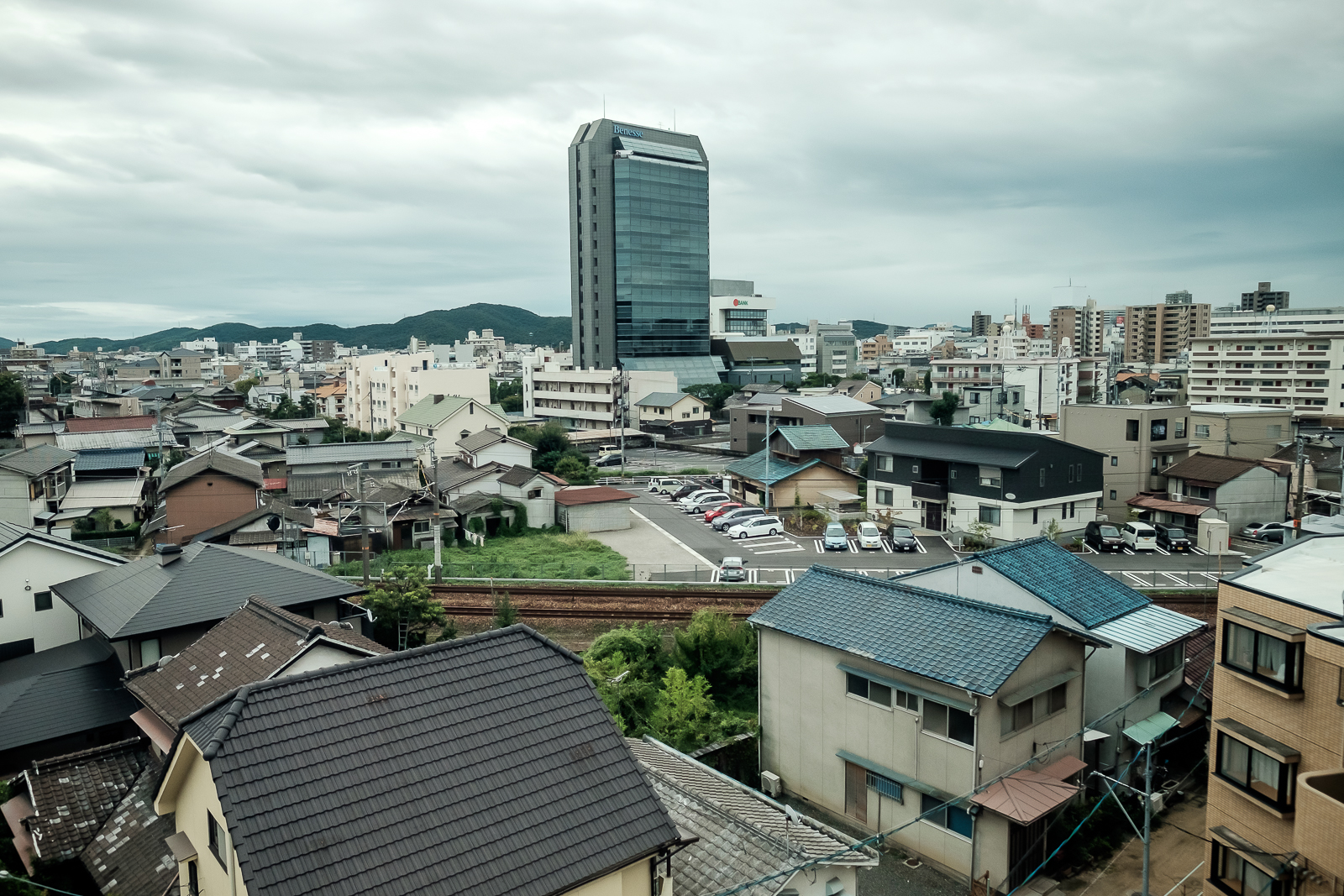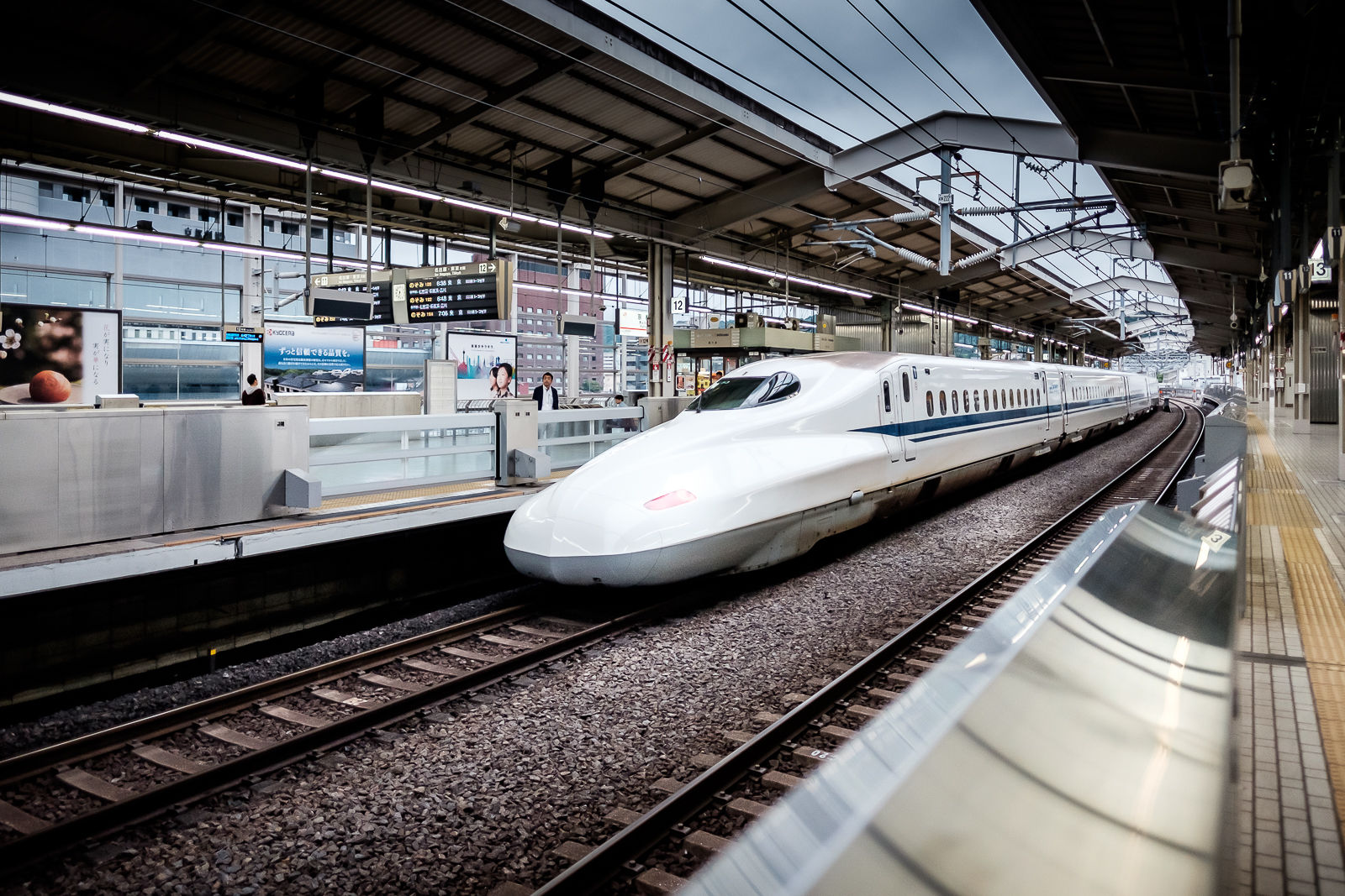 The trip from Kyoto Station to Hiroshima had me incredibly excited as I was to travel there via the infamous Shinkansen or Bullet Train as it is commnoly called. The Japanese revoultionised high speed rail in the 50’s and 60’s to build upon its already incredible rail network. The sheer engineering involved in Japan’s railway networks is astonishing and perhaps one day will be the subject of a photo journalistic piece I would like to write. One day. Seeing your first Shinkasen pull into a station is intense. They pull in at quite a speed and by the time the 16 carriage long train has come to a precision stop you feel like you just watched a space ship land…up close! They pull in and out on time. One this day, the Shinkansen only took about an hour and a half and when at top speed was humming along at over 300kmh. The inside of the Shinkansen is much like a passenger plane however it is super quiet.