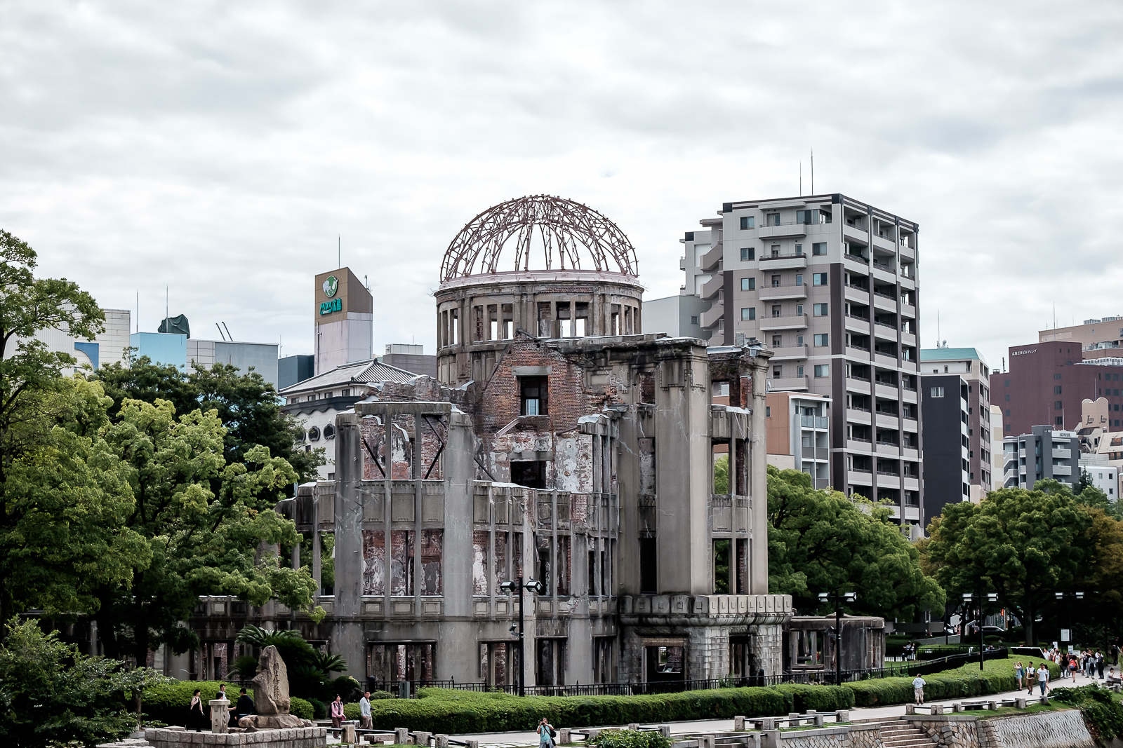 A short bus ride from Hiroshima Station and you come to one of the most important historic sites of the 20th Century. Here is why. On August 6, 1945, the first ever city in the world to be hit with an atomic weapon was Hiroshima. The bomb was nicknamed Little Boy and contained enriched Uranium-235. The creation of this bomb used up almost all of the known Uranium available in the world. Crazy. It is reported that 90% of the city was destroyed and that 80,000 people died instantly with countless others suffering and dying from radiation-based illnesses. And countless more as a result of malnutrition or the resulting fires. The bomb actually detonated high above Hiroshima – directly above what is now referred to as the ‘Atomic Bomb Dome’. It sits in the Hiroshima Peace Memorial Park. Most of the structure of this building, which was once the Hiroshima Prefectural Industrial Promotion Hall, is intact. Brick, concrete and the recognisable dome formed by metal beams. It was one of the only buildings to have remained standing. But the 6,000 degree heat blast did warp solid concrete like butter and twisted steal beams like spaghetti.