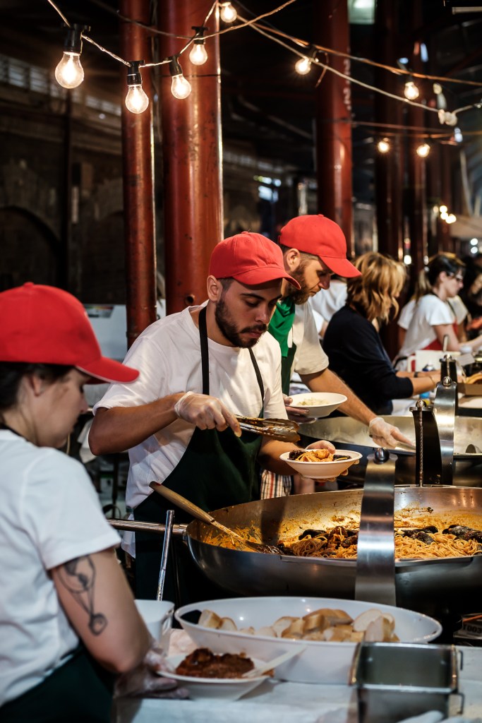 The highlight for everyone in attendance was the food on offer. Street food from every corner of the globe was available in one form or another. And even though I only arrived at 6pm – only an hour after it opened – there were huge lines in front of every stand. Not that this was a problem really. As every stand had lots of staff both preparing and serving food in a fast and obviously well practised. This enourmous sheds were filled with the smoke and smells of cooking meats and vegetables. And the place was packed. Several sheds and several open-air areas were all jam-packed with people.