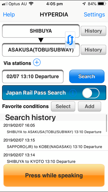 Hyperdia is a fantastic app that allows you to schedule your travels via the complex train network of Japan. It is all in English and it allows you to simply set your departure station and your arrival station and finally when you want to travel. It will then give you the next 5 routes including the duration and distance of the trip, the fare and the train line to catch. This works on all the different networks including subway and Shinkansen. If you are traveling long distances, it will even include flights. But at the local level, a very cool and handy app to get around a city like Tokyo.
