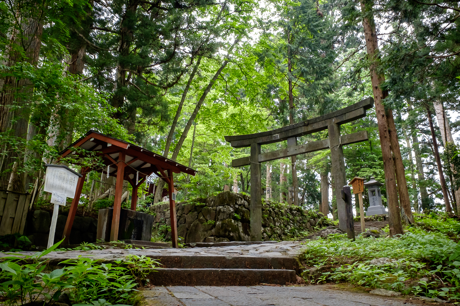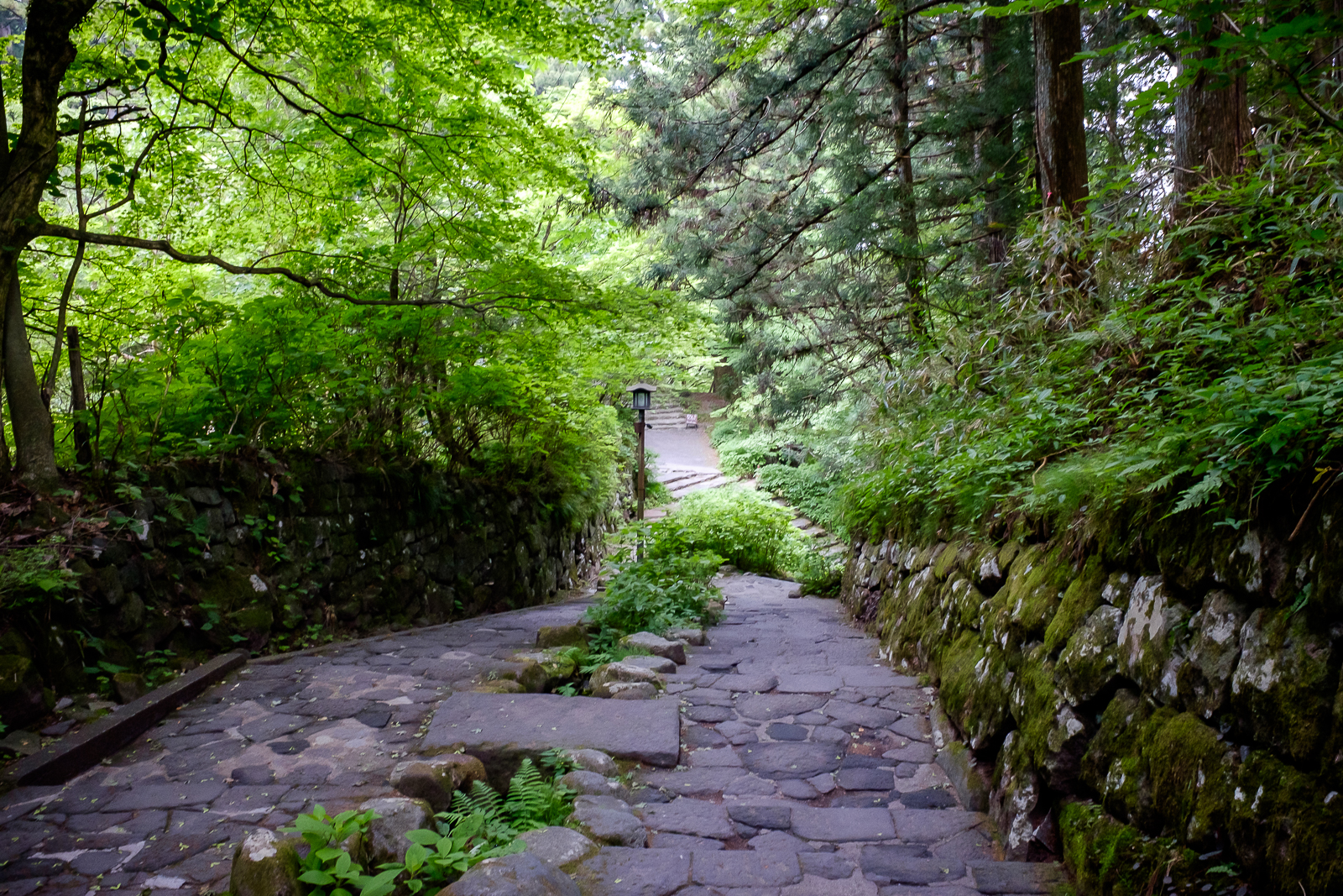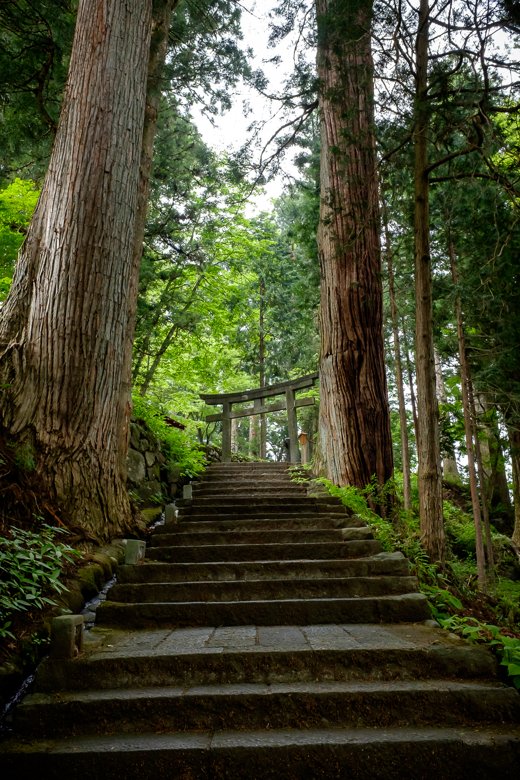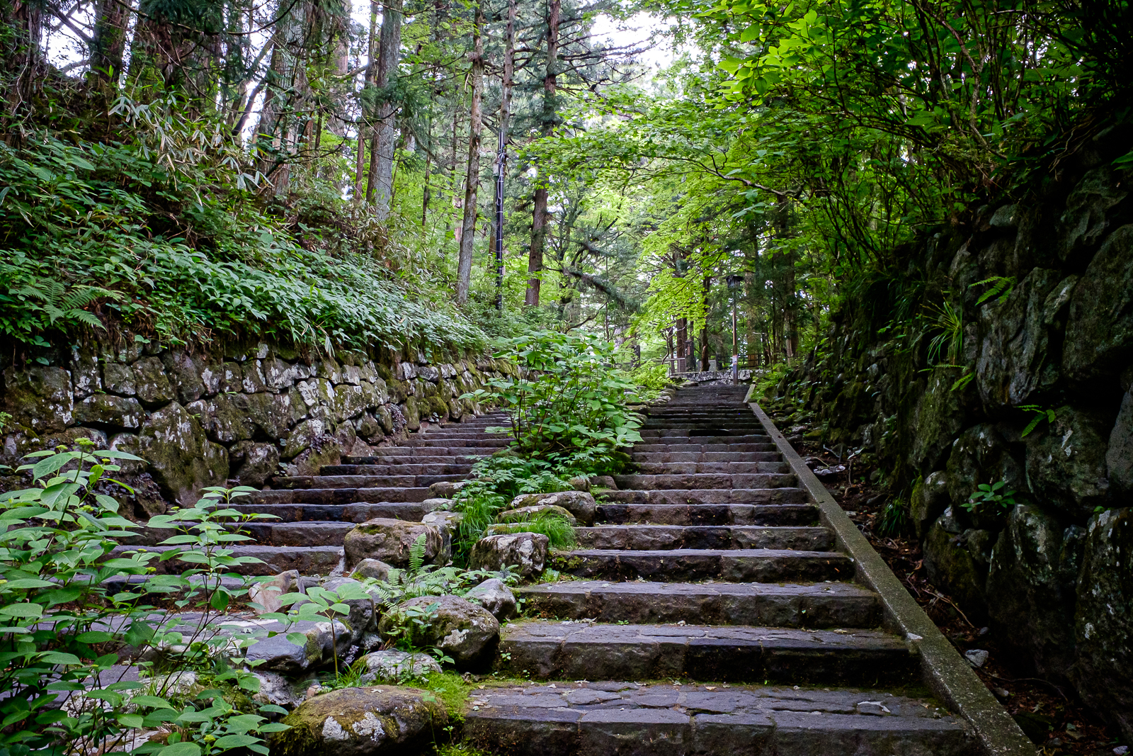 Once across I was faced with stairs and forest disappearing into a wooded hillscape. This is what I had come to see. Sore fee or not. I climbed up into a forested mountain area with tori gates and stone stairs. Obviously worn with age and natures encroaching relentlessness. After some time climbing and some heavy breathing I can to the first temple. It is enormous and a deep red with gold decorations. So grand and awe inspiring. Unfortunately most of the exterior of the lower building was covered in scaffolding as they were renovating the building. That was disappointing. Who walks uphill to see scaffolding? I spent the next hour wandering around the various stone pathways throughout the site. It was an overcast day making it even darker under the canopy of the giant trees. The downhill pathways I took were just gorgeous. Green canopy overhead, forest to each side and ancient stoneworks. Ah the peace and quiet was so welcome.