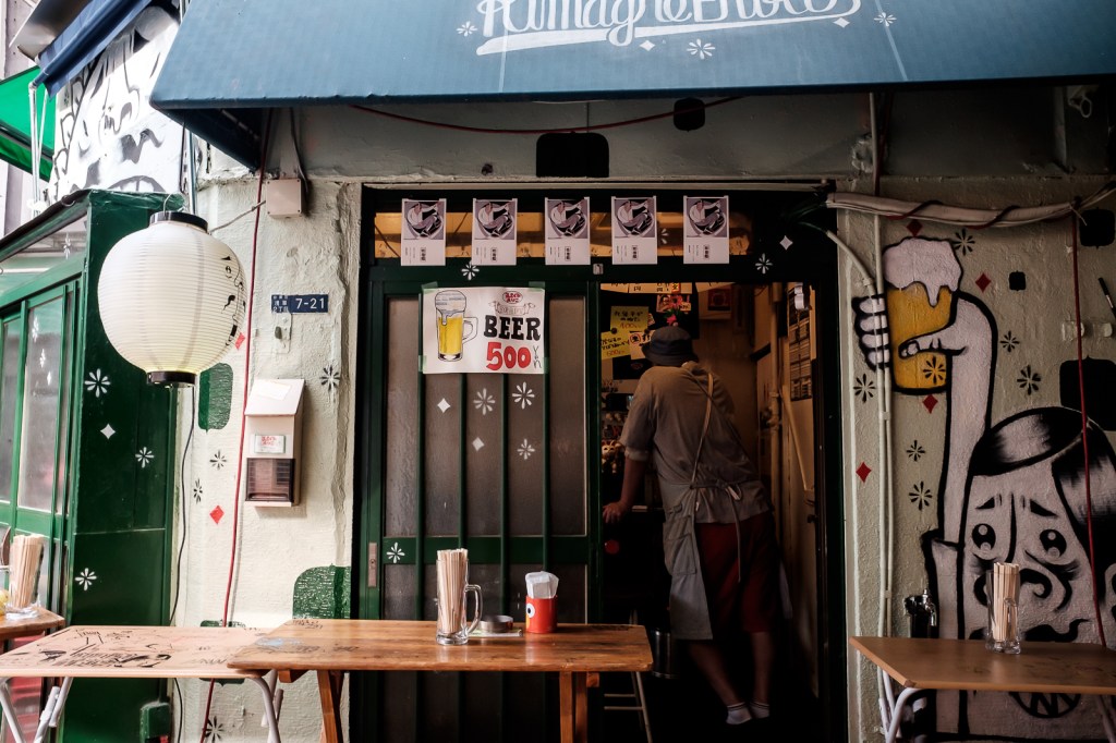 I set the alarm for fear I might wake eight hours later. I woke really disorientated but got myself up and ready for some more adventures. I returned to the grounds of Senso Ji and took more street style shots with the X70 in hand and a spare battery in my pocket. I chose to leave my X-T3 and camera bag back at the hotel and travel light. I made the rounds and walked along many side alleys and maze of back streets that surround the temple complex. The architecture seemed mostly untouched for some time. It suited the age and feel of the temple buildings adding to the charm of the area. I found a tiny bar and restaurant and grabbed a seat outside for some Karaage Chicken and a cold beer. This little shop only made a few dishes. So damn good. Strangely the place closed at 5pm. Perhaps it would open later when a lot of the other little bars were to open.