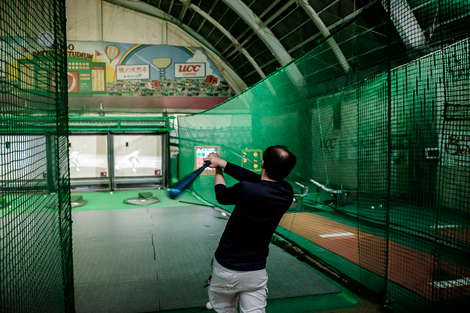 I got myself over to Hoppy Street and a little bar for some beers. Oh and of course I was waiting for the light to drop so I could take some more shots at golden hour. I met a local elderly man who spoke quite good English. We chatted for a while as we watched the world go by. I also met a couple at the same bar with a little white fluffy puppy. We were sitting outside. It made me miss Yuki. I played with their puppy and showed them photos of Yuki. Proud papa! I made the rounds again and got some great street shots in. I also stopped at an arcade that had a batting centre on the second floor. The batting centre is a big cage where people can hit as many baseballs as they like. They are shot out of a ball machine. Got some shots there too.