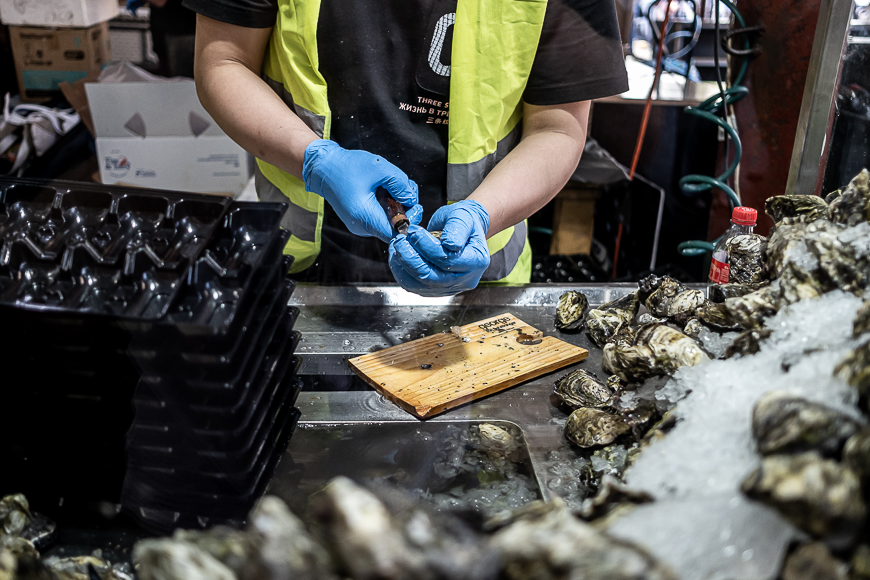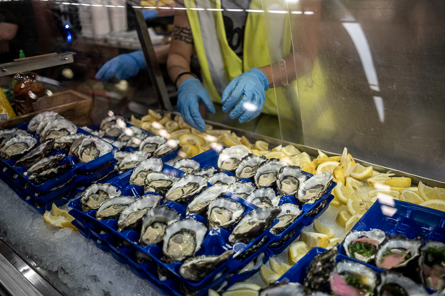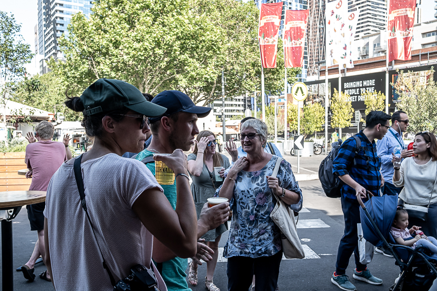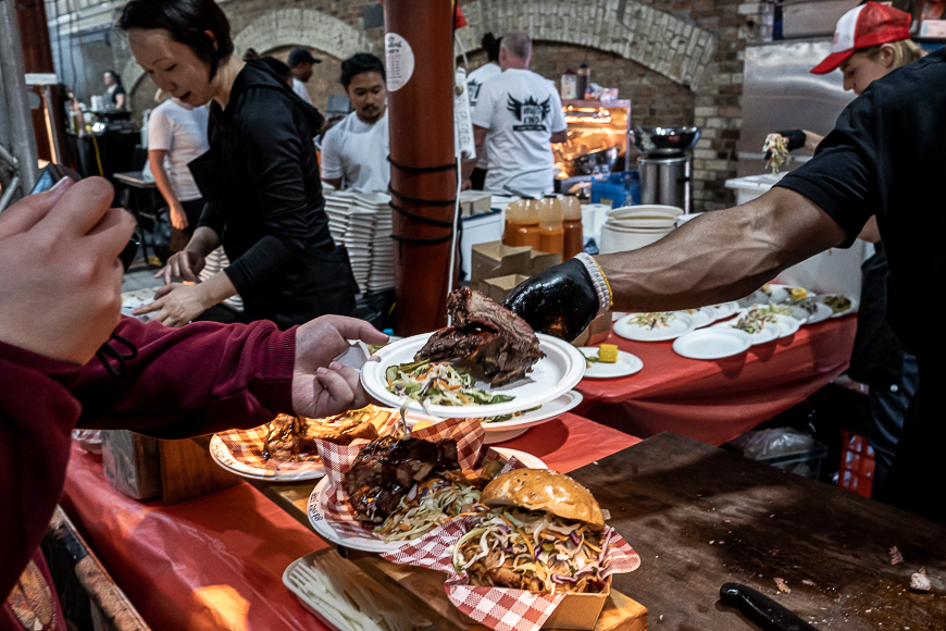 However last night was a great start to the Summer Night market with a pretty decent crowd turning out. Along one whole side of the giant shed, was a long line of food vendors selling everything from fresh oysters and Bao Buns to roasted meats and giant sausages in rolls. Everything looked and smelled so fresh it was really hard to not be distracted by it. And it seemed that there was food from every culture on the planet. The whole shed was filled with the smoke and steam from dozens and dozens of barbecues and grills. And the setting Western sun lit those smoke particles to fill the space with amazing light.