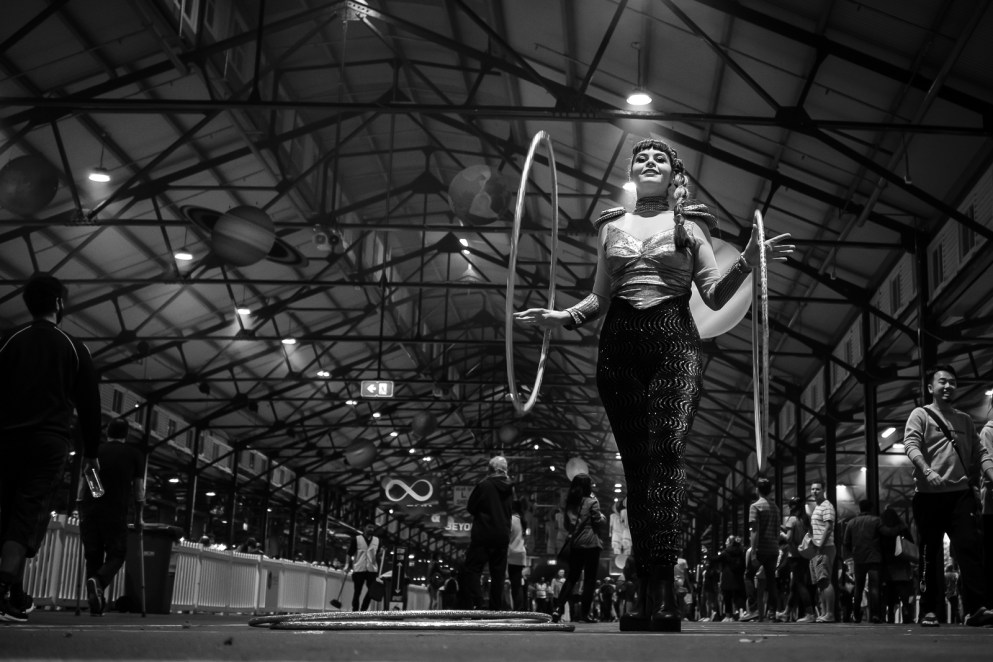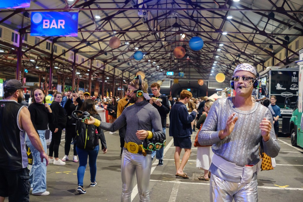 As for entertainment, the Queen Victoria Night Market didn’t disappoint. Within the dining area, there was a solo singe/guitar player on stage – he was really good too. There was a girl doing a hula-hoop performance, a guy doing light shows on stilts and of course the Silent Disco. The Silent Disco team have been a regular feature of the night markets and often you’ll see them doing private events around Melbourne. The Silent Disco guys were dressed in space-themed costumes and they play music directly to anyone wearing one of their wireless headphones. They dance around the market and put on a good show for anyone taking part.