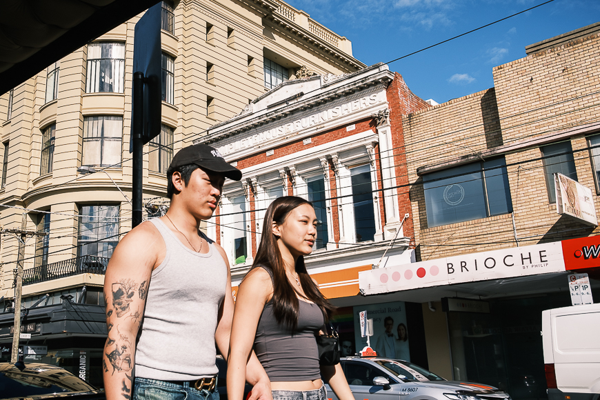 For street photography, I typically apply Classic Chrome. It mutes the colour a little and adds excellent contrast and warmth to images. I’ve been using Classic Negative for street shots more recently, as it is a little greener in hue and more washed out than Classic Chrome. One of my all-time favourite film simulations is the black and white Acros. It delivers a gorgeous tonal value to street and lifestyle images with just the right amount of contrast. I love using the Fujifilm film simulations on my RAW files as I appreciate the cohesion between using a Fujifilm camera and seeing Fujifilm colour science at play.