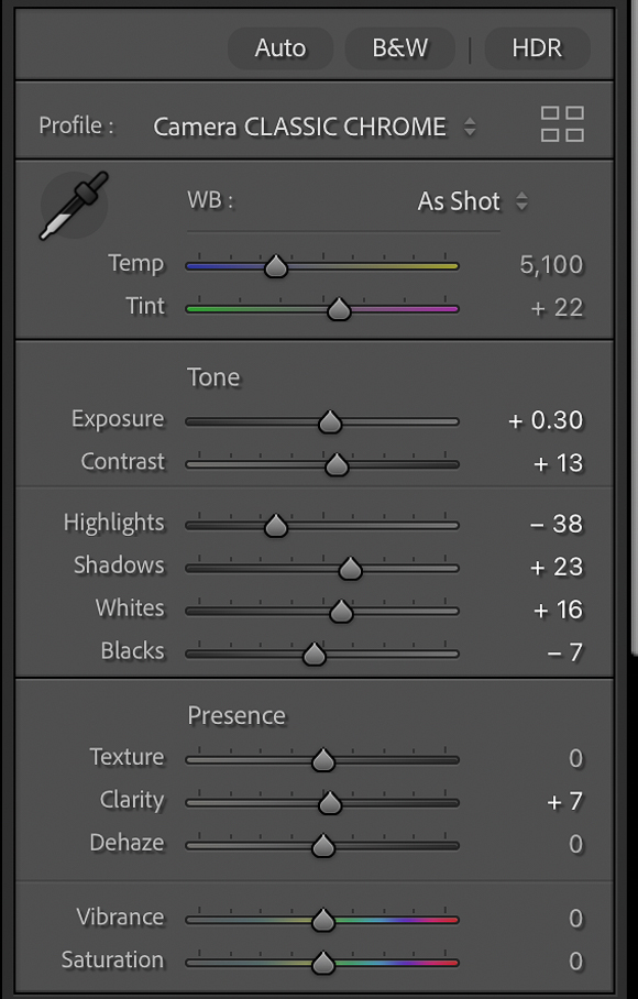 Aside from adding film simulations or custom presets, there’s often a need to make minimal edits to the image. I try to work with a light hand as I’ve seen many examples of over-saturated and over-contrasted images. I’ll make the necessary adjustments to Exposure, Contrast, Highlight, Shadows, Sharpness and Noise management depending on the lighting conditions of the photo. I also like to add a bit of a feathered Vignetting to reduce its impact. I think it adds a little depth to flatter images. I prefer not to use masking to push back highlights or open up shadow areas. If I didn’t get it right when I took the photo, I’d learn from it.