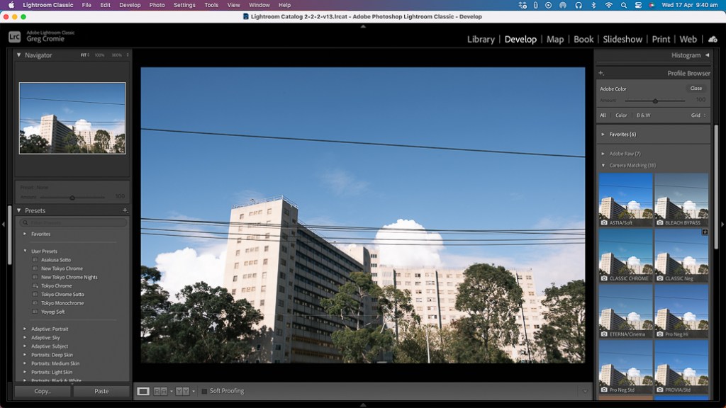 Good morning, and welcome back to my blog, where I talk about my life as a photographer and writer. I’ve been getting out and about lately and have captured thousands of images in the past three months. I’ve shot a range of styles in all sorts of lighting conditions. What’s more, I’ve been out and about with my camera shooting street scenes for me, and I’ve taken a lot of shots dedicated to articles I’m working on for here and for clients. Like most photographers, I employ an end-to-end workflow to review, collect and edit all these images. I’m working with a 2017 iMac (more on that later) and utilise Adobe Lightroom as my primary editing software.
