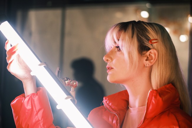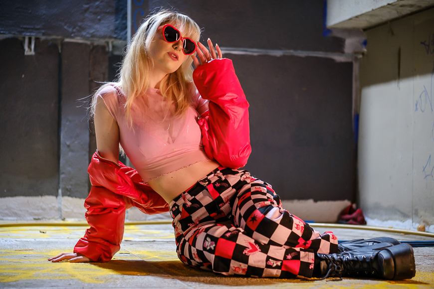 I knew that the case of new GFX and X gear was already on its way from Sydney to my door. As a result, I didn’t opt to use one of the new products on offer. Instead, I stuck with my Fujifilm X-E4 and the XF 50mm F2. The two together made for a lightweight and compact kit. The 50mm isn’t my typical lens of choice for a street walk. However, on this streetwalk, we were fortunate to have four models join us to pose in the streets and laneways of Melbourne. Ted’s and Fujifilm had also organsied for some amazing lighting kits to be supplied by Nanlite. These included handhend LEDs and tube lights that emitted bi-colour and RGB light. As a result, we worked in tight, dark back streets while illuminating the models with the Nanlite lighting kits. We moved through Melbourne and stopped in four different locations to make the most of the backdrops and settings.