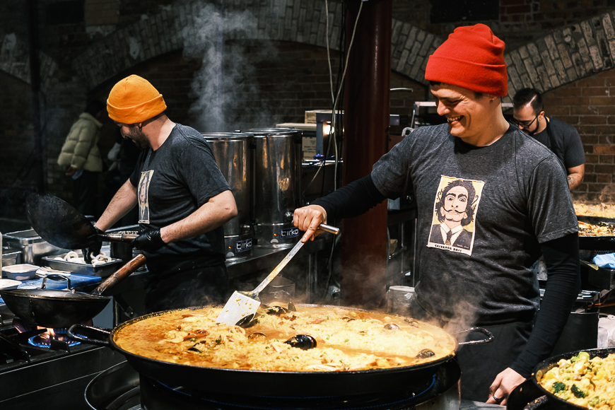 The night market is a draw card for Melbournians looking for a night out. Given that it’s at the edge of the CBD, hundreds of people make their way to the night market from work. By day, the Queen Victoria Market is a traditional market with a great deli hall and then countless sheds packed with vendors selling everything from veggies to books. The night market takes up around four of the large sheds and is surrounded by food trucks, vans and stalls selling food from all corners of the globe. So many amazing smells and the halls fill with smoke from the large open barbecues. It’s a wonderful atmosphere with one critical exception; the sheer volume of people attending the market.