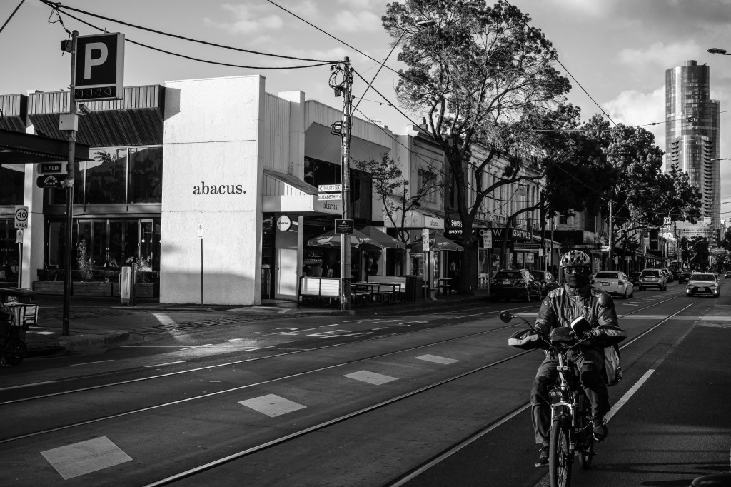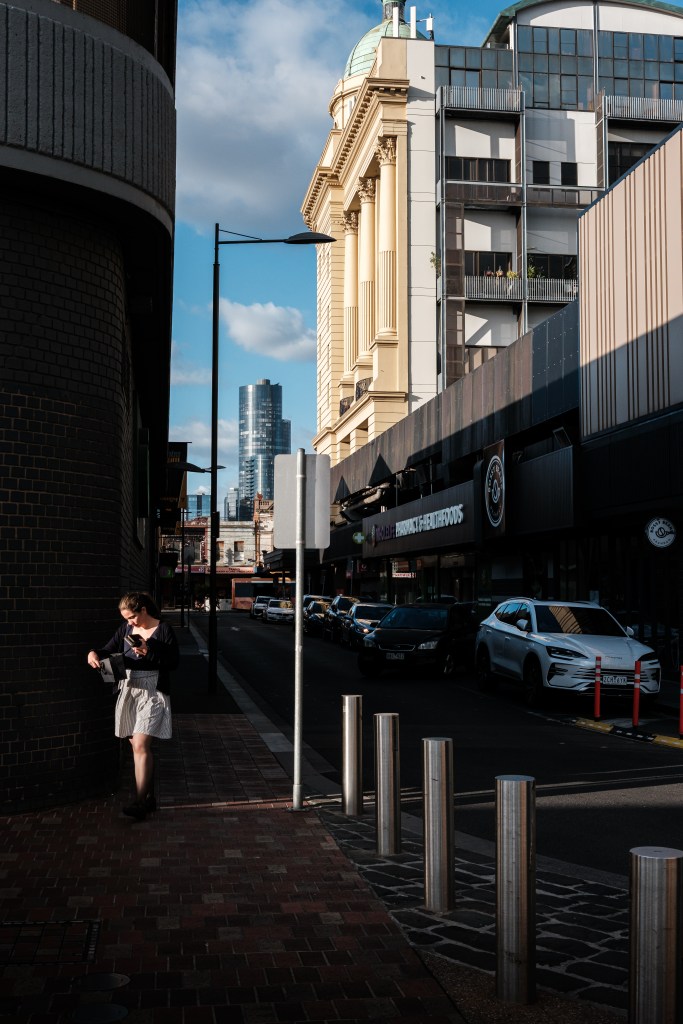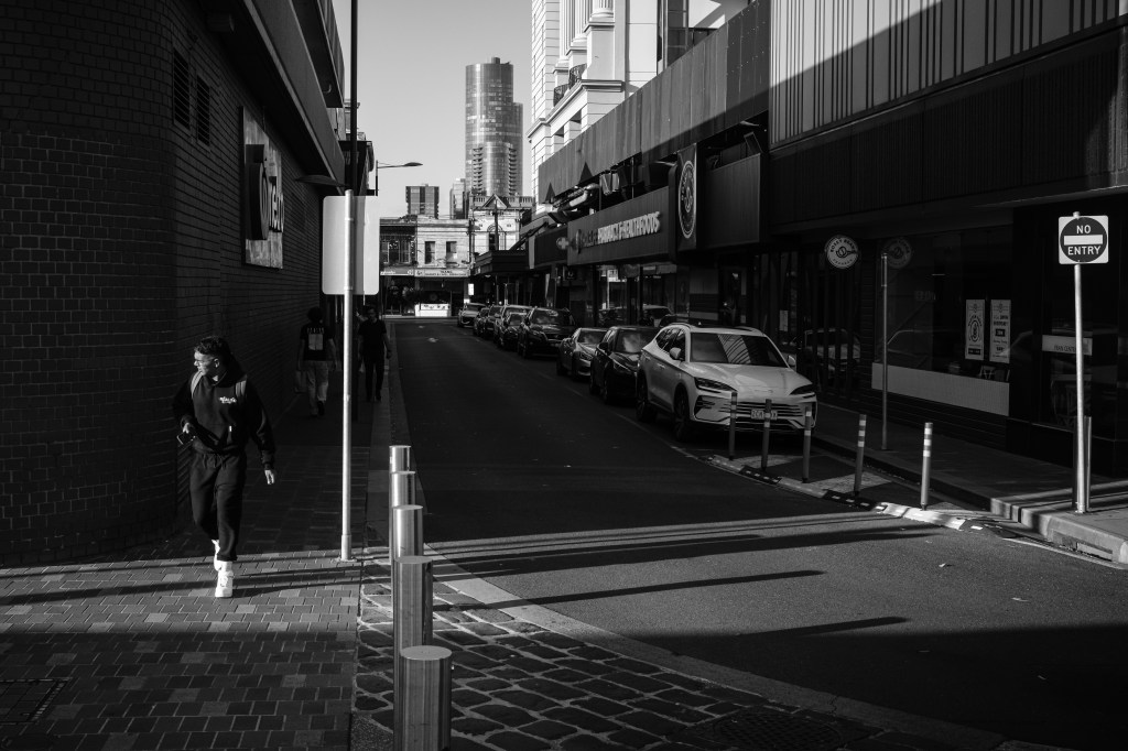 That’s enough of a preamble. Let’s get to the street photography. As described in my article ‘My 2025 Year In Review’, I had a couple of unpleasant encounters while out shooting street late last year. It spooked me and put me off my game for a bit while I pondered my next steps. It turns out, you can’t keep a good street photographer down…or off the streets for long. With the dawn of 2026 came a greater understanding of my craft and of why it is important to me to continue documenting my local neighbourhood and the inner-city suburbs of Melbourne. I am taking a more cautious approach to who and what I photograph. Instead of tackling compositions from a low angle (literally squatting), I stand up and back a little to frame a larger portion of the background. In turn, this gives me a little more distance from any subjects walking into frame. Given that I mostly shoot with wide primes, it doesn’t hurt to step back a bit to capture a broader picture.
